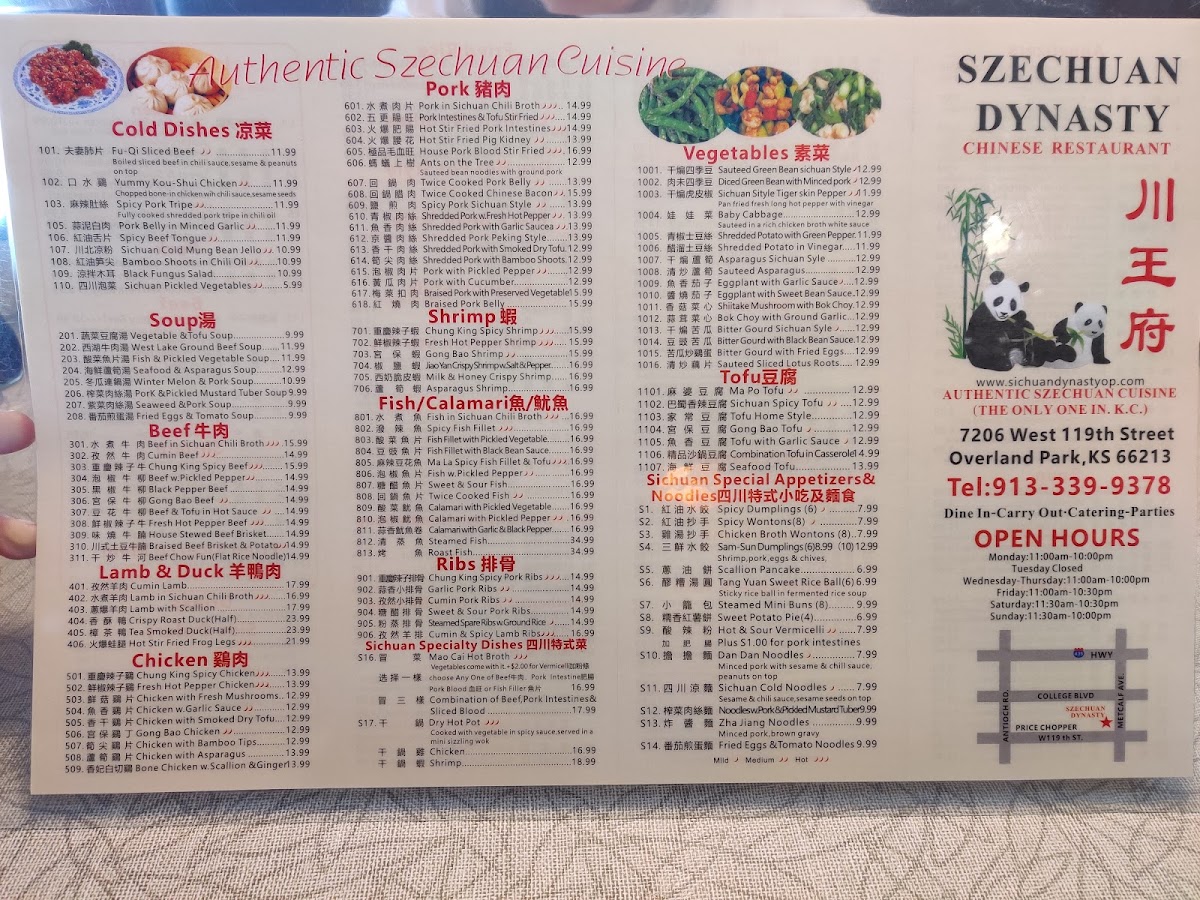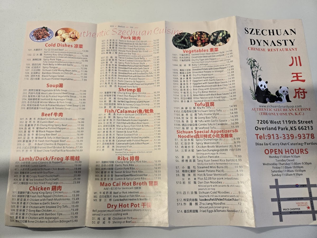 Sichuan Dynasty Menu